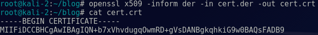Using OpenSSL, we converted the certificate to a human-readable .crt format: