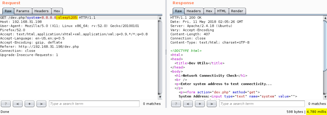 Let's take it a step further. What if we wanted to exfiltrate some data? Perhaps we're unable to gain a shell from our injection attempts, and we need to figure out why -- or we just want a better proof of concept for our report.
